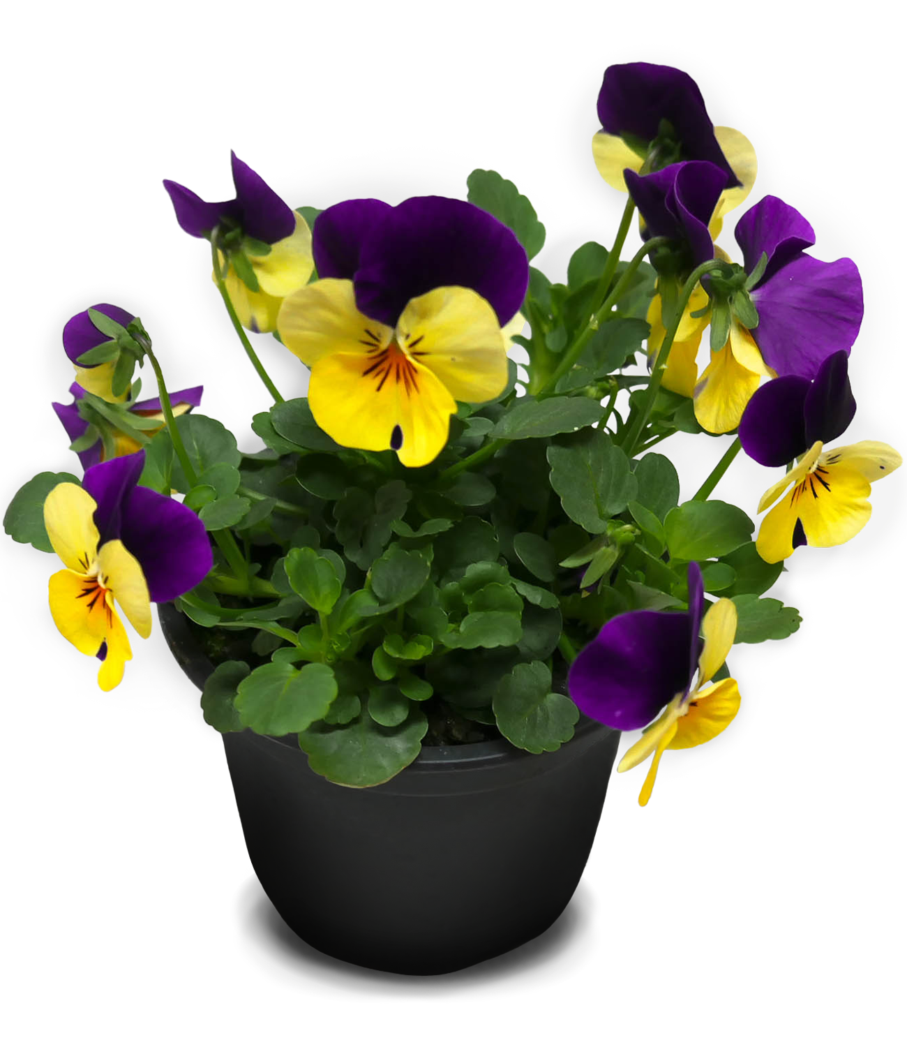 De Viola F1 (grootbloemig) en Cornuta (kleinbloemig) zijn beschikbaar in 9 cm potmaat.